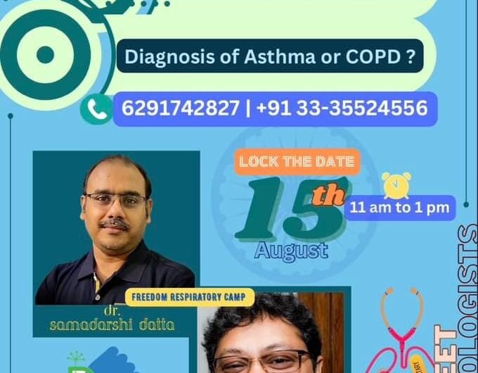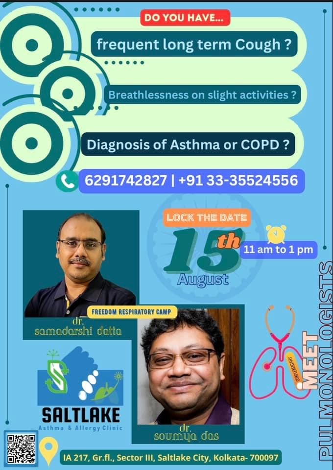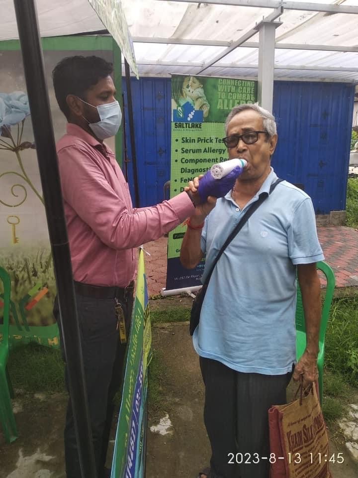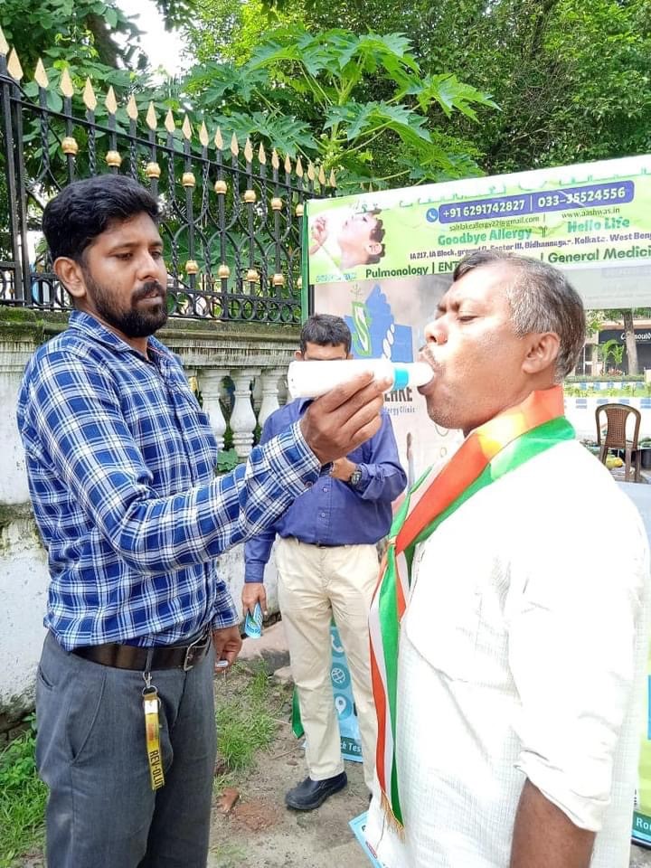 Freedom Respiratory Camp on Indian Independence Day : Basic spirometry,Asthma Control Test, CAT scoring and lifestyle counselling done at prominent locations of Saltlake and at our operating site as well. We got huge response from all participants across all age groups.We got bountiful of support from our Supporting Organisation ‘Saltlake Asthma and Allergy Clinic’